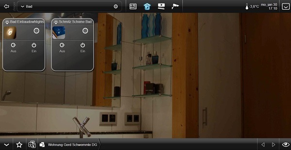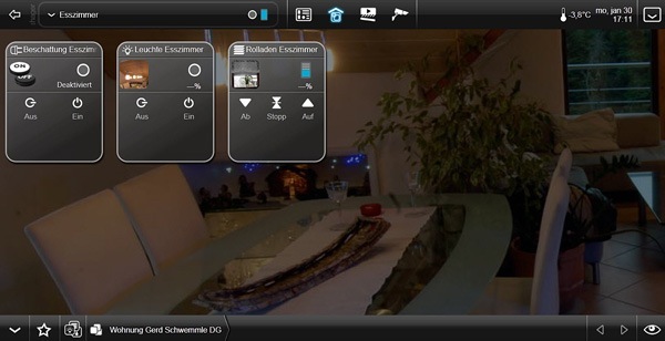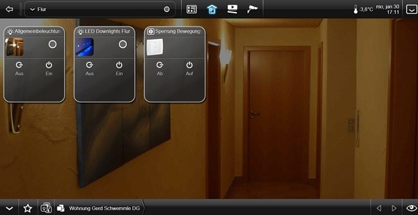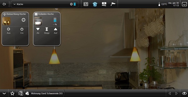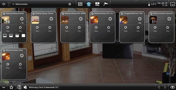 Oder einfach im Urlaub einen kurzen Blick auf seinen Garten werfen und die Daten der Wetterstation sehen. Rund um den Globus – Rund um die Uhr. Problemlos lassen sich auf dieser Oberfläche Web-Cams oder intelligente Stromzähler integrieren, ebenso Ihre bereits vorhandene EIB-Wetterstation. Lassen Sie sich einfach eine E-Mail mit Bild schicken, wenn jemand bei Ihnen an der Tür klingelt. Da sich die Wertigkeit nicht schreiben sondern nur fühlen lässt, zeigen wir Ihnen sehr gerne unsere Visualisierung hier im Hause.